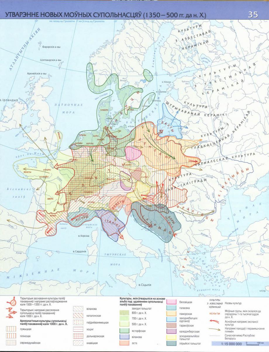 Это значит, что первый этап этногенеза славян протекал в основном на землях современной Польши. Лишь на крайнем юго-западе, в районе Бреста, поморская культура проникала на белорусскую территорию. Остальная часть Беларуси была занята культурами, в сложение которых основной вклад принесли потомки древней общности шнуровой керамики, слившиеся с племенами «лесного неолита». Им предстояло сыграть роль субстрата для будущих белорусов, а также русских, литовцев, латышей и в какой-то мере – финских народов (формирование которых происходило в это же время в ареале ананьинской, позднекаргопольской и лукконсаарской культур на севере Восточной Европы).