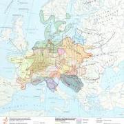 Следует отметить, что существует альтернативная локализация древнеевропейской общности – ее связывают с ареалом культур шнуровой керамики. Но эта концепция противоречит выводам лингвистов о времени прекращения контактов балто-славяно-германского языкового ареала с кельто-иллиро-италийским. Связи между культурами шнуровой керамики, имеющими хоть какое-то отношение к формированию италиков и балто-славян, могли бы существовать только во время так называемого общеевропейского горизонта шнуровой керамики. Он относится к позднему неолиту, согласно калиброванным радиоуглеродным датам – около 2,9–2,5 тыс. лет до н.э. Такая дата разделения выглядит слишком ранней. Общими для индоевропейских языков (включая и те, что обособились задолго до стадии древнеевропейского единства) являются названия сакрального царя (рекса), бронзы (меди) и драгоценных металлов, меча, колесной повозки и деталей конной упряжи, терминов кузнечного дела, купли-продажи и владения собственностью.[4] Все это соответствует реалиям скорее бронзового века, а не позднего неолита.