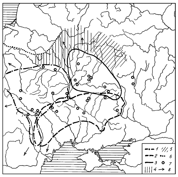 Рис. 18. Культуры V–VII вв. (по Р. Терпиловскому)