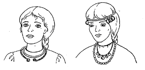 Рис. 21. Женские украшения, характерные для славянских курганных могильников (по Л. Дучиц)