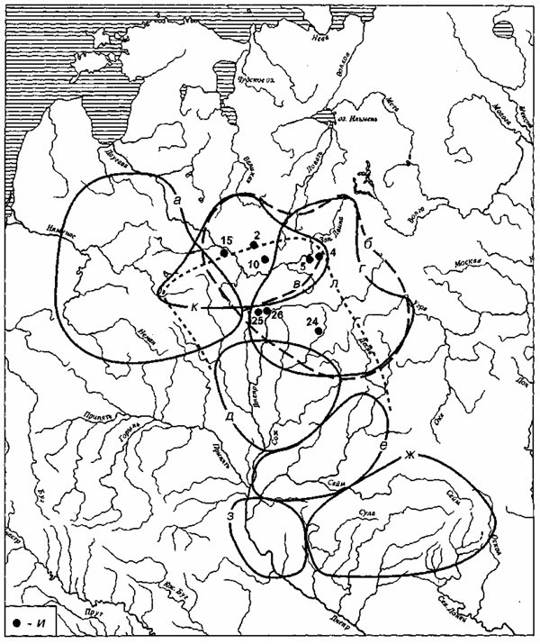 д, е, ж, з – локальные варианты киевской культуры